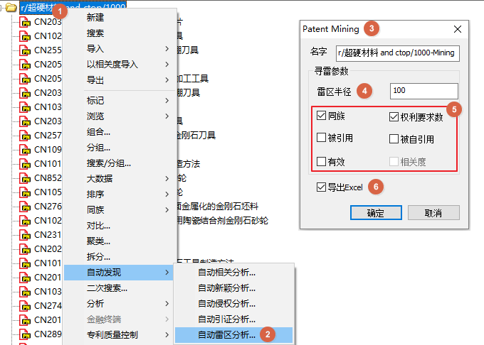 6)勾选Excel,自动生成Excel对比地雷专利与普通专利参数。